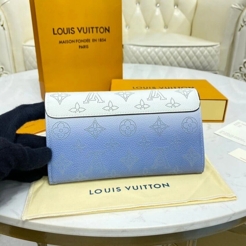 2 large c Louis Vuitton Iris Wallet in Blue Gradient Mahina Perforated Leather